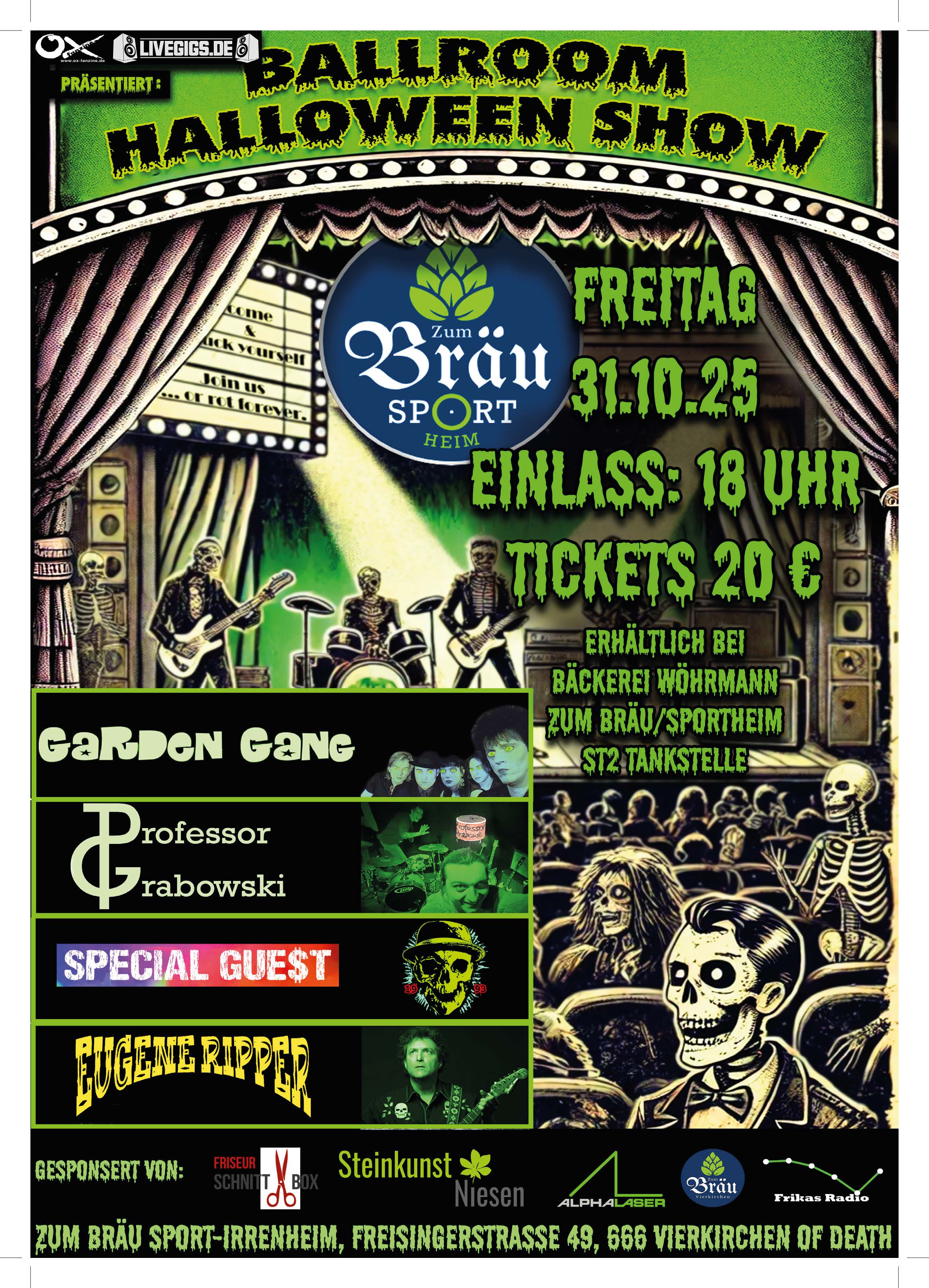 BALLROOM HALLOWEEN SHOW im 'Sporti Bräu Vierkirchen' am 31. OKTOBER 2025, EINLASS AB 18:00 UHR